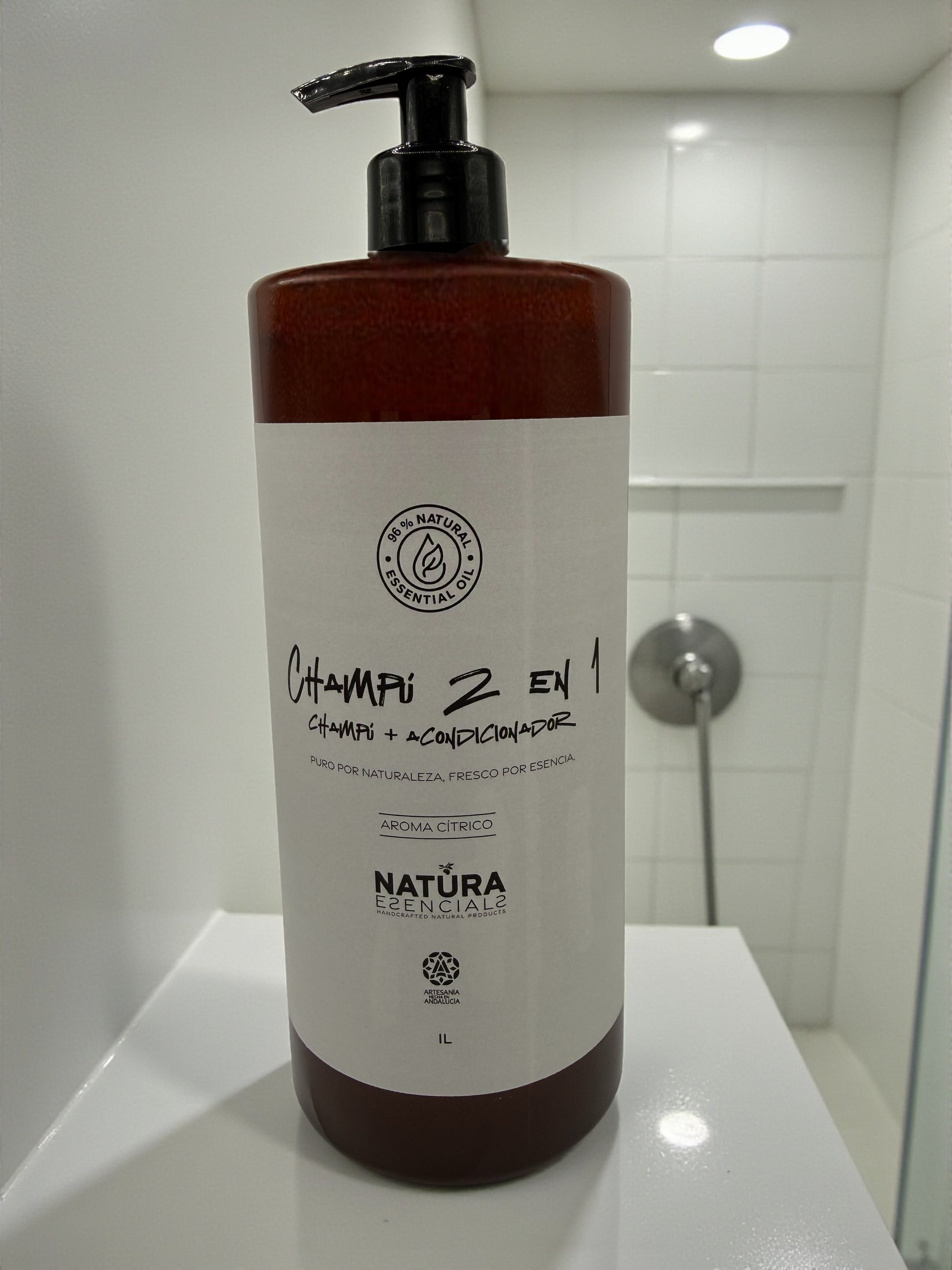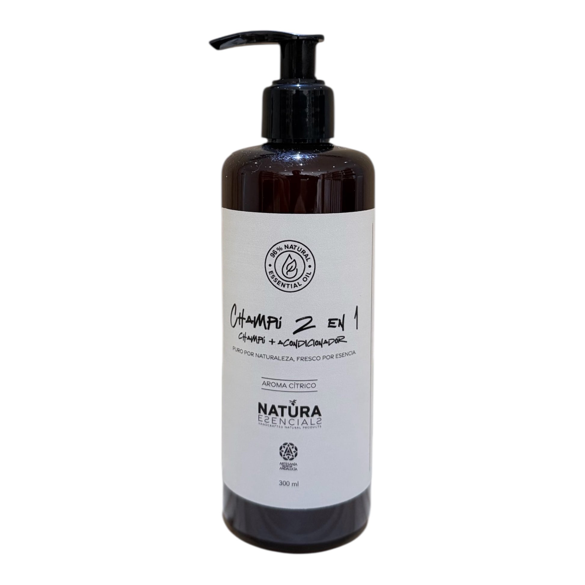 Champú 2 en 1 de origen natural para cabello normal: limpia y acondiciona en un solo paso. Acabado ligero, desenredo fácil y elaboración artesanal.