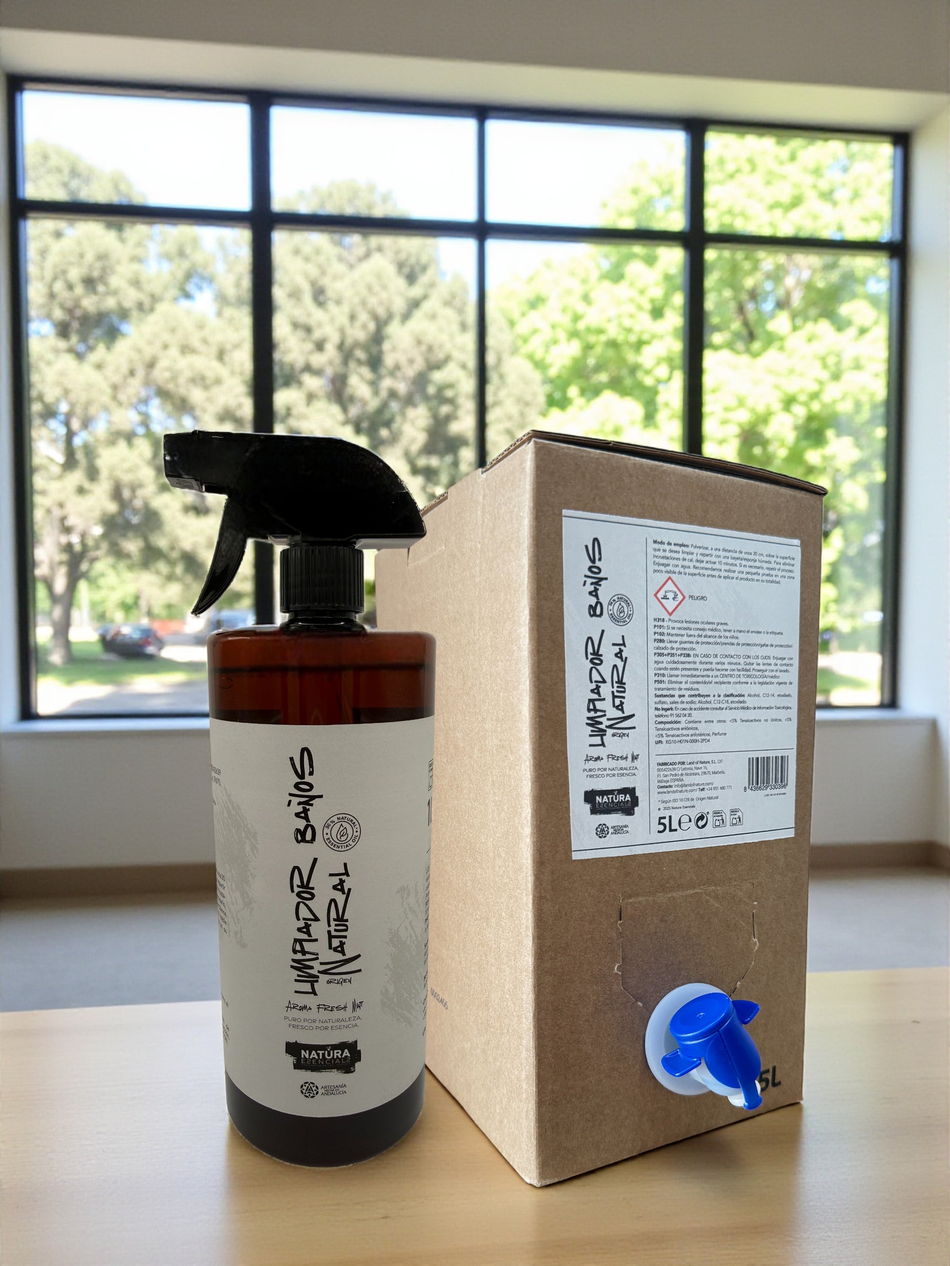 Limpiador de baños de origen natural para sanitarios y superficies húmedas. Ayuda a retirar cal, jabón y suciedad. Secado rápido y acabado fresco. Elaboración artesanal.